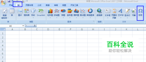 方法一:打开Excel表格,点击插入菜单栏下的“符号”(如图);