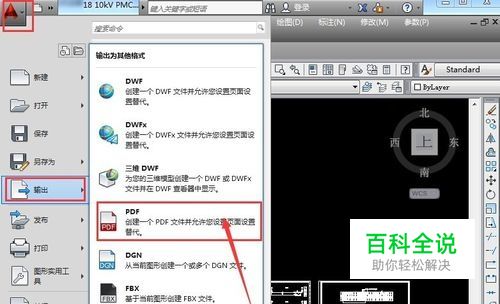 在CAD2014按钮处点击出现下拉菜单,选中输出,再选择PDF
