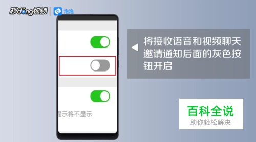 将“接收语音和视频聊天邀请通知”后面的灰色按钮开启。