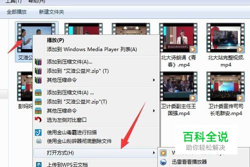 之后我们在视频文件上右击鼠标,选择打开方式,再点击“选择默认程序”选项。