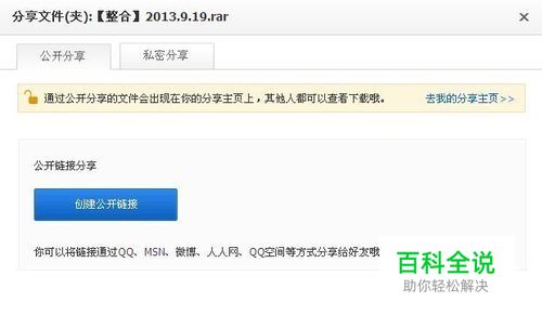 将文件上传至百度网盘,点击 分享,并创建 公开链接 ( 私人链接也行,只不过要记下提取码,虽然麻烦但更安全, 不过考虑到之前已经给压缩包加密过了,所以为了方便就用公开链接)