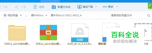 1、这里我已经下载完成了,里面有2个主要的安装程序,一个是犀牛的中文版主程序rh50_zh-cn_5.11......,另一个是32位和64位的补丁压缩文件,这里我已经解压好了。