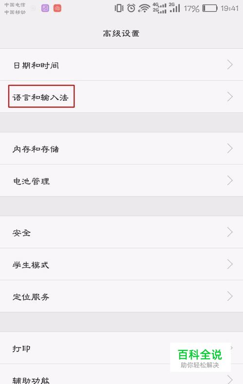点击进入高级设置,找到其中的语言和输入法。