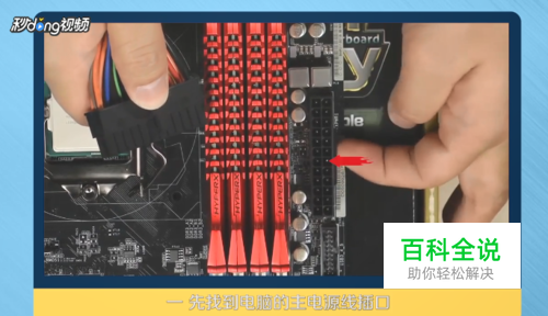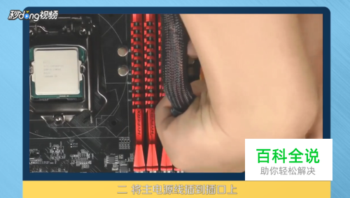 找到CPU电源接口,检测电源线的正反,对准接口插入。