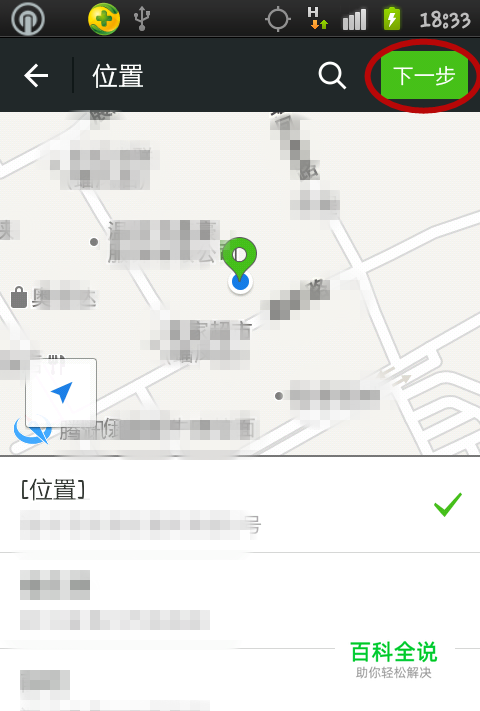 进入一个地图页面,页面会显示出你的具体地理位置,点击下一步,即把地理位置收藏