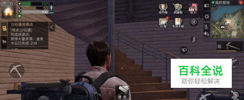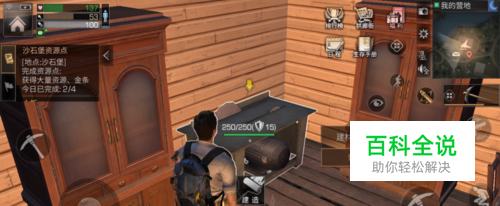 另外一种材料石砖,这也是需要合成的,材料是石头、骨头和石灰,石头就就是挖矿,骨头就是击杀动物和感染者获得,石灰需要在营地中心家具店购买,最后合成即可,这里需要1个石砖材料即可。