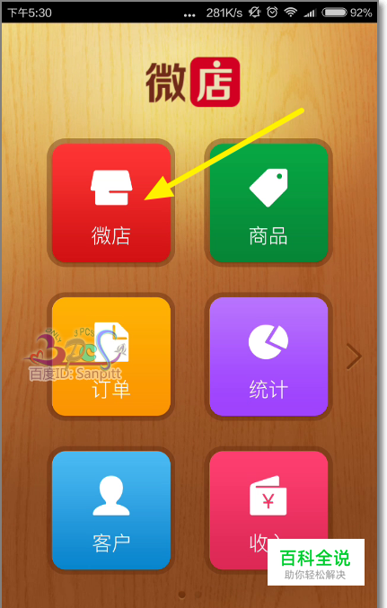 首先进入自己的微店,在首页点击微店。