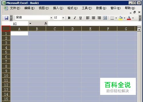 打开Excel表格,单击“A1”旁边的空白单元格全选,如图红框所示。