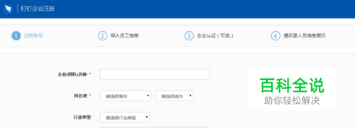 在这个注册的流程中需要填写企业或是团队的名称,所在地,行业,还有企业账号登陆的名称密码。