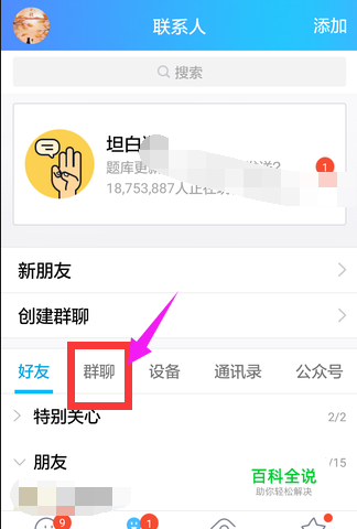 然后找到群聊选项,点击选择,如图