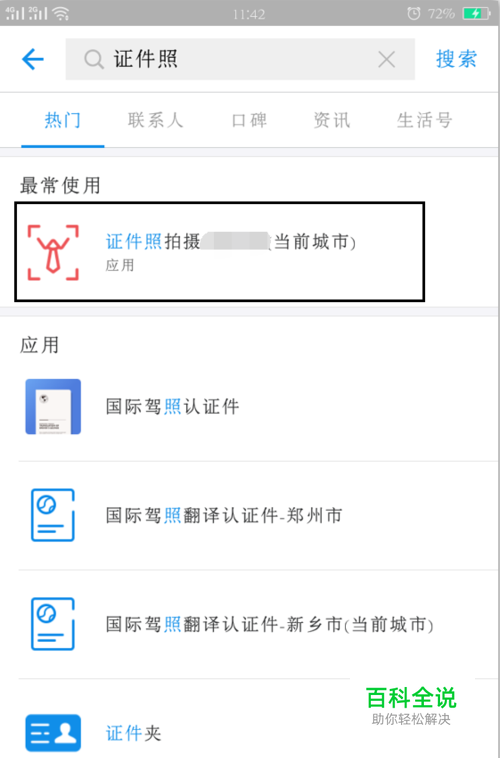 打开支付宝,在搜索框中输入“证件照”