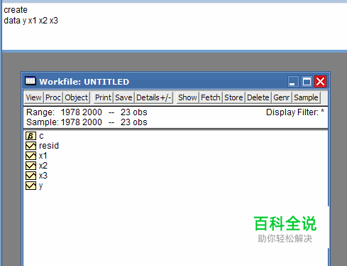 3、根据我之前的一个案例来具体分析模拟一下。根据数据创建一个时间在1978—2000的时间序列工作文件,(具体操作曾经经验写过,不在这里重复,只给出结果)