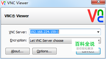 在Windows客户端下打开http://www.realvnc.com/,下载对应平台的VNC-Viewer客户端(该文件为绿色软件,无需安装),双击下载下来的文件即可打开 在VNC Server一栏输入 192.168.224.159:1 点击Connect,在弹出的小窗口中输入第3步设置的密码回车即可连接到远程桌面。