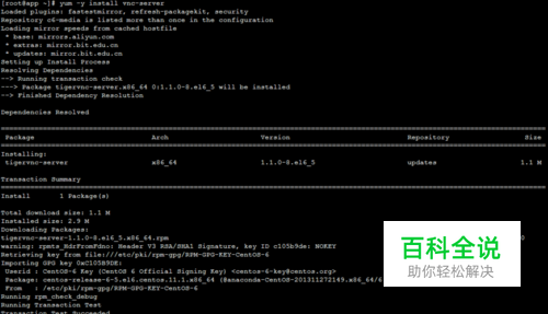 在Linux平台安装VNCServer服务端软件包。 #yum -y install vnc *vnc-server*