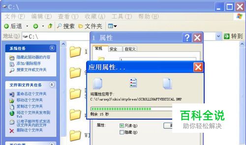 返回到“1属性”窗口后,按“应用”按钮,压缩开始,会需要一定的时间,时间的长短与文件夹的大小相关,文件夹容量越大,压缩时间越长,耐心等它压缩结束。