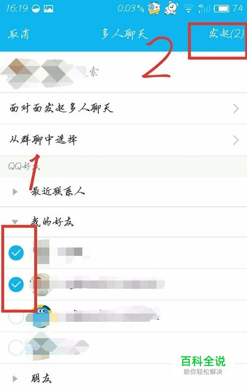 选择 两个好友或者自己的小号(推荐选择自己的小号),再点击右上角的”发起“按钮