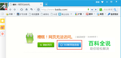 打开网页,显示“网页无法访问”,这时候点击弹出页面中的“断网急救箱”。