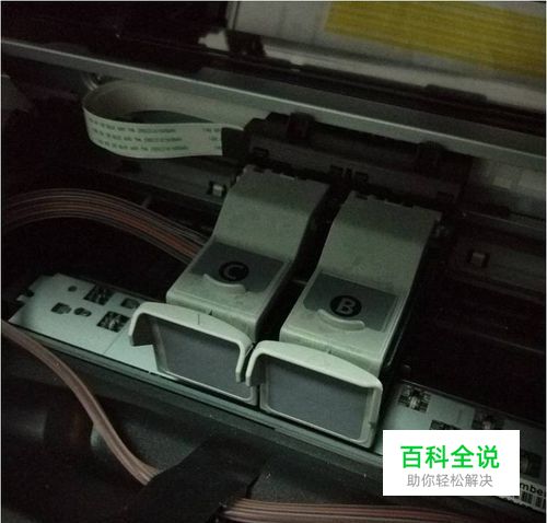 掀开打印机的机顶,看到墨盒在中间位置。