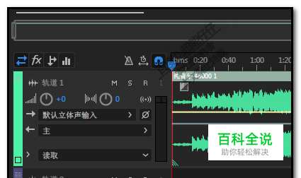 我们把音频素材拖到音轨中;本例是拖到了轨道1; 现在是选中的状态下