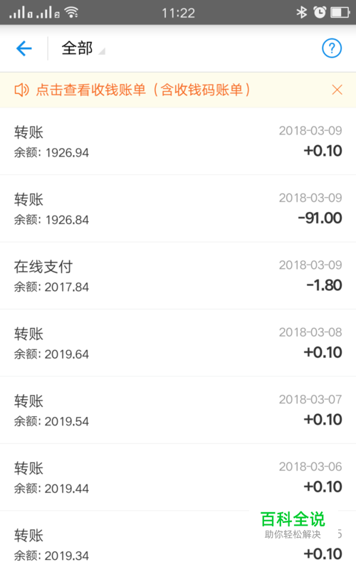 首先我们先看下支付明细的流水,这里一般就显示转账、支付、收入等,如图