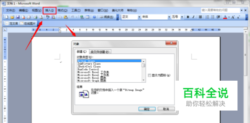 选择,插入--对象,如图。