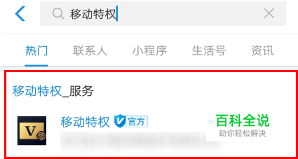 打开手机中的支付宝APP,然后在搜索中输入移动特权