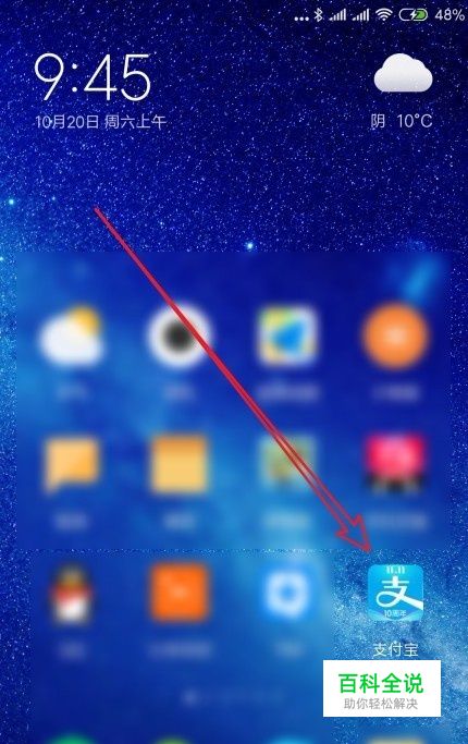 首先我们在手机上左右滑动屏幕,在屏幕上找到安装好的“支付宝”的图标。