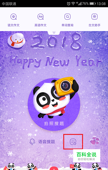 第二步进去软件之后,点击中间的+号图标,进去拍照搜题界面,点击文本图标,如下图所示: