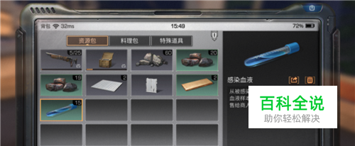 其实我们大家在日常制造的时候可以发现感染者血液似乎没有用到过,其实这个确实没什么用,但可以出售可以获得新币,我们打开背包找到【感染者血液】。