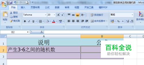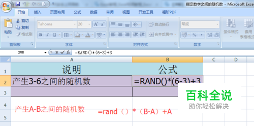 第二步,在这个单元格内手动输入【=rand()*(B-A)+A】。这里的A是起始的数字,B是结束的数字。如图我是在3-6之间产生的随机数。