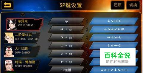 第二,SP编辑,可以设置技能,拳皇97中一共有8个SP组合键,人物的所有技能都可以编辑SP键来使用。