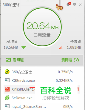这时候电脑右下角就会有一个加速球图标, 这里显示电脑内存的使用情况和网速。如果发现加速球上不知不觉的网速很快,就很有可能软件有恶意软件在后台联网下载东西。