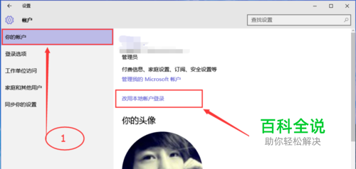 如图所示,点击【你的账户】---->【改用本地账户登录】。