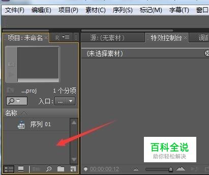 再将要放在上面的视频按住拉动到序列面板上的视频2轨道上。