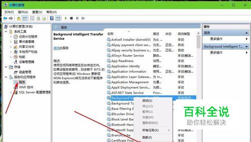 计算机管理》服务》服务与应用程序 右边》Background Intelligent Transfer Service》属性/双击