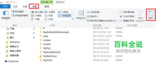 在A、B、C、D这几个文件夹的视图中,点击上方的【查看】——【选项】,弹出【文件夹选项】对话框。