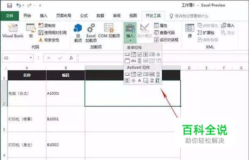 “开发工具”标签点击“插入”→“其他控件”,选择“Microsoft Barcode Control 16.0”;插入→其他控件→Microsoft Barcode Control 16.0