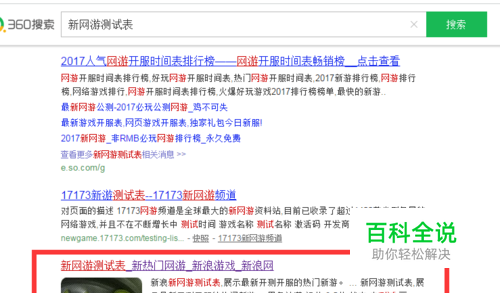 打开浏览器,并在搜索界面输入新网游测试表,并点击他。