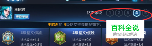 选择进来之后我们可以看到这里铭文是有等级划分的,最高等级是5,等级越高越好,我们选择5然后查看推荐给该英雄的铭文。