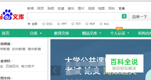 进行进入到了百度首页位置中,然后进行点击“文库”的选项即可,在搜索框中输入需要搜索的内容。