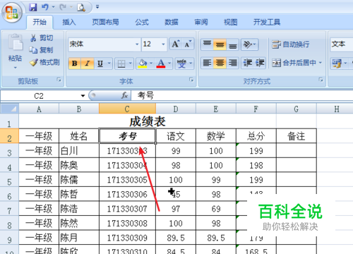 第二种方法:利用格式刷。首先选定被复制格式的单元格。然后点击箭头所示的“格式刷”工具按钮。