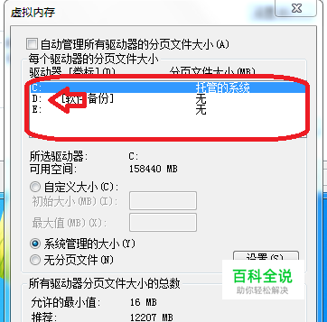 虚拟内存应在C,D,E,F,G,H等等,盘符中越靠前越好,原因:机械硬盘:机械硬盘是由盘片为存储介质的,盘片在旋转中,越靠近盘片外圈的盘面读取、存储越快。固态硬盘:固态硬盘无所谓,但是只有少数的人计算机上只有固态硬盘,大多数人都是机械硬盘与固态硬盘混用,机械硬盘的读取速度仍然影响固态硬盘。为什么要靠前并追求提高速度呢?因为运行内存的存取速度远远大于任何硬盘的存取速度,用硬盘代替运行内存,速度非常重要。请看图片:虚拟内存可以设置在以下盘符内。