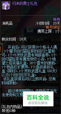 连续1个月不登陆游戏。是的,你没看错。这样做的目的是让你的角色在一个月之后登陆时变成归来勇士。优点是能得到归来勇士礼包。礼包里有多种福利,对角色升级有很大的帮助。
