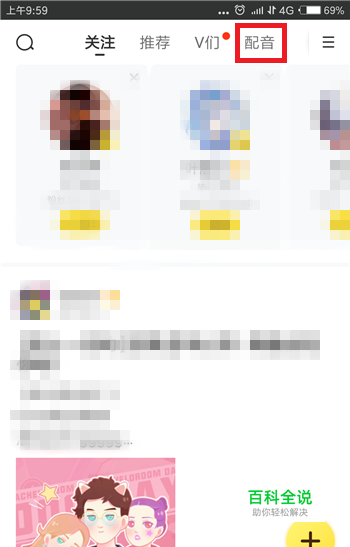 在世界界面中找到顶部的分类【配音】并点击进入配音界面。