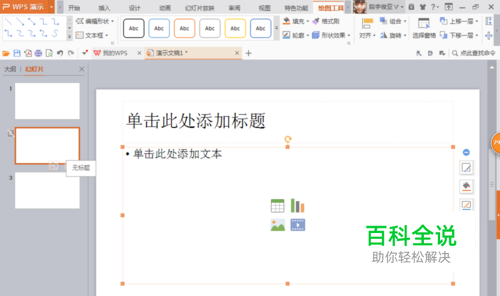 可以选择一种幻灯片的版式,如图,左侧既有标题也有副本。