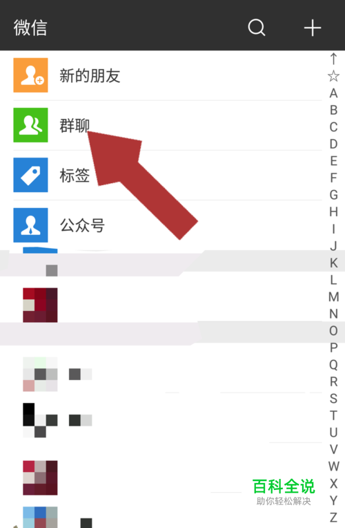 在通讯录页面点击”群聊“,进入我们所有加入的群聊页面,点击我们想要推荐的微信群,进入该群的聊天页面。