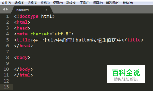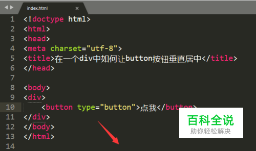 新建一个div标签,在div标签下编写一个button标签。