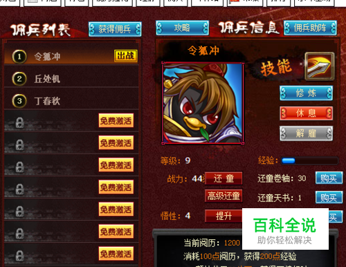第二步:打一只你所需要的佣兵,要么资质洗到完美,存丹点悟性;要么悟性点到10,存还童洗资质!(还童不够的豆油可以每天去历练相应的BOOS,不是极品就解雇,也有几率打到完美佣兵哦~)