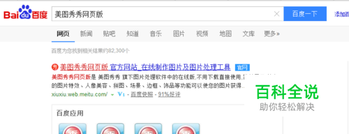 我们打开浏览器,然后输入【美图秀秀网页版】,然后点击进入美图秀秀的官网。