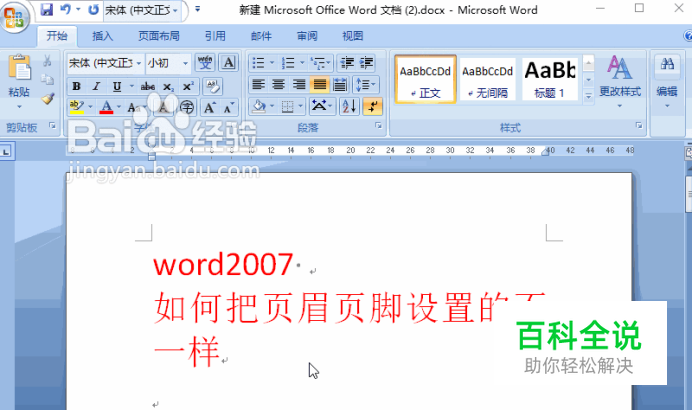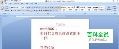 word2007 如何把页眉页脚设置的不一样